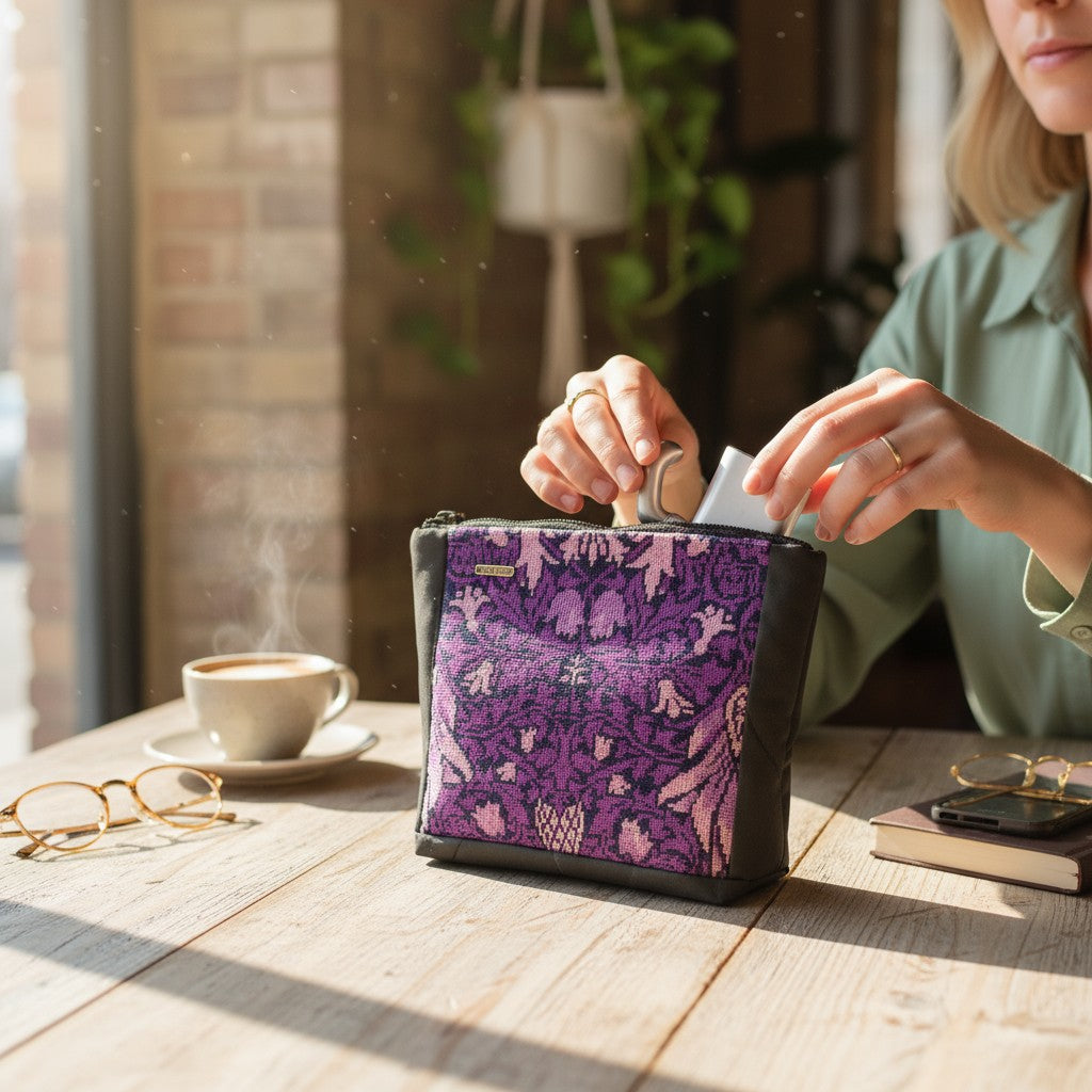 Tapestry zippered purse - Large - Purple - Helen Kuster