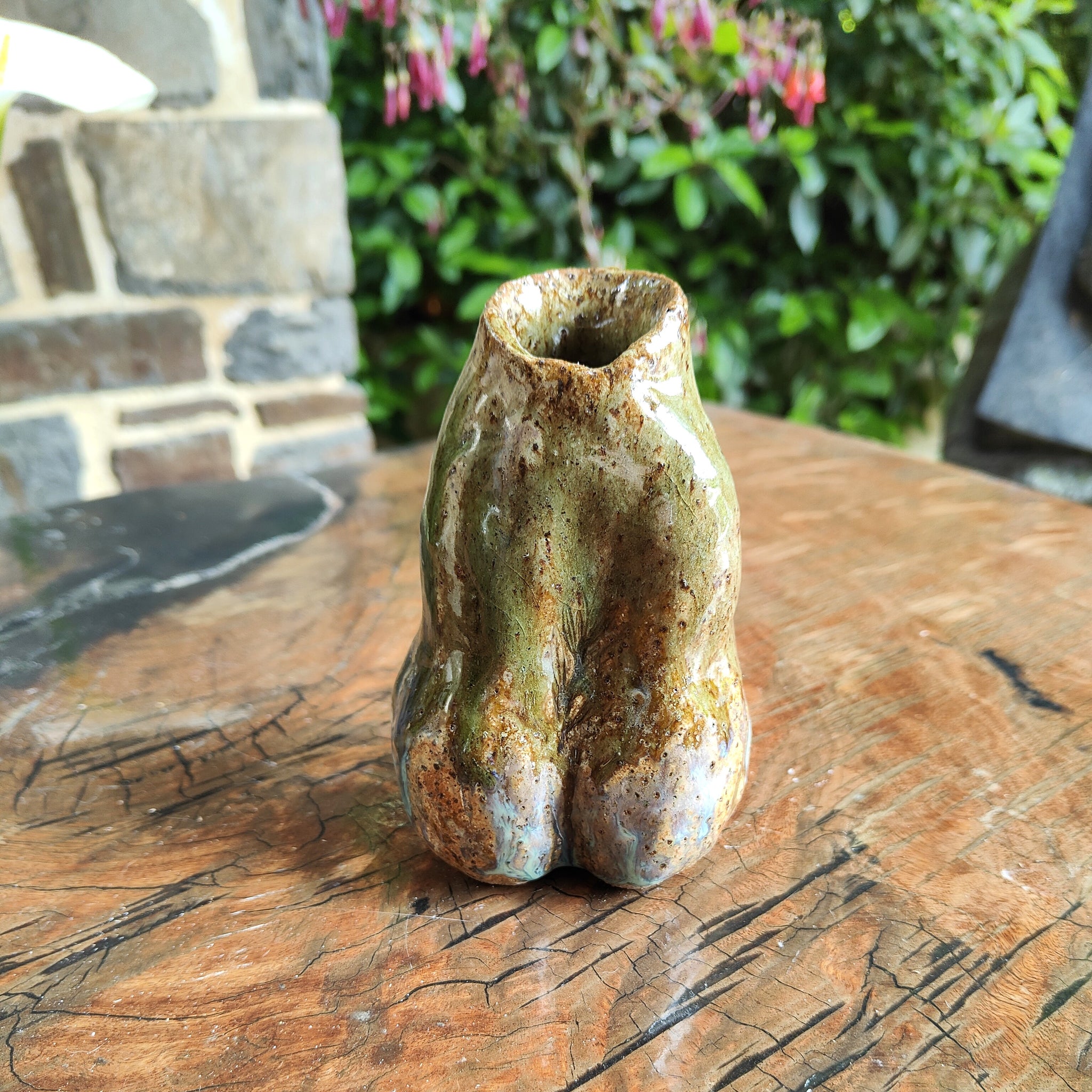 This expressive handmade vase by Adelaide Hills ceramic artist Tatty K celebrates the beauty, strength, and organic forms of the feminine figure. Standing 14 cm tall, the Forest Woman Vase is sculpted in the shape of a woman’s torso, blending earthy textures with flowing glazes that evoke moss, bark, and the quiet magic of the forest floor.